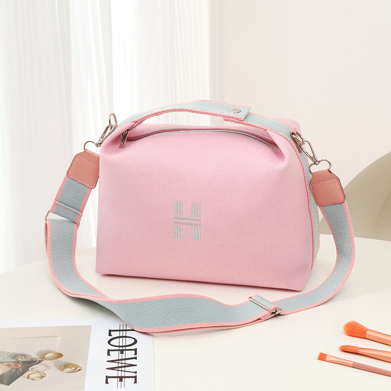 Womens Canvas Crossbody Bag Pink Minimalist H-Letter Box Tote Wide Strap Shoulder Handbag for Travel & Work Large Capacity