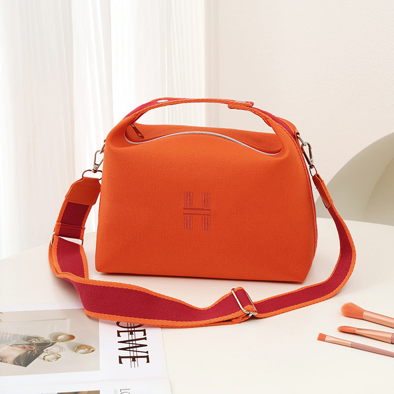 Womens Canvas Crossbody Bag Orange-red Minimalist H-Letter Box Tote Wide Strap Shoulder Handbag for Travel & Work Large Capacity