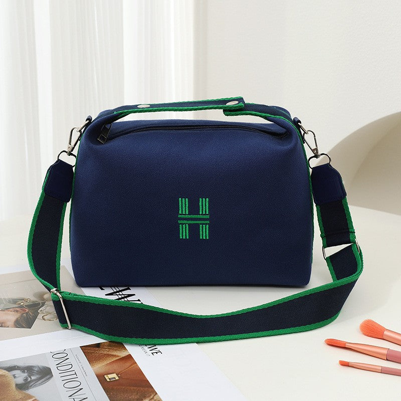 Womens Canvas Crossbody Bag navy blue Minimalist H-Letter Box Tote Wide Strap Shoulder Handbag for Travel & Work Large Capacity