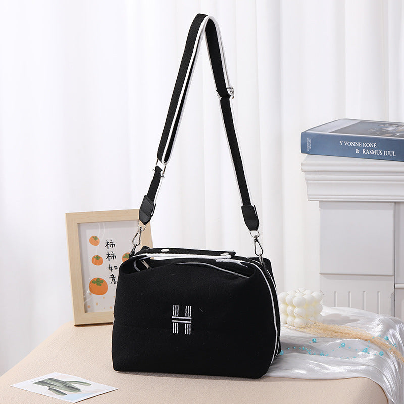 Womens Canvas Crossbody Bag Black Minimalist H-Letter Box Tote Wide Strap Shoulder Handbag for Travel & Work Large Capacity