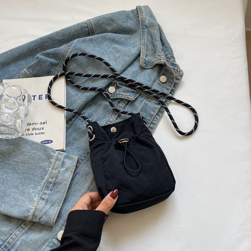 Black Durable Nylon Small Square Phone Bag - Quick-Access Magnetic Closure, Versatile All-Match Shoulder Pouch