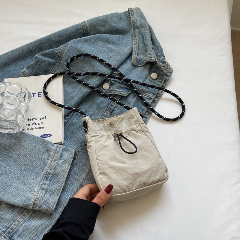 Beige Durable Nylon Small Square Phone Bag - Quick-Access Magnetic Closure, Versatile All-Match Shoulder Pouch