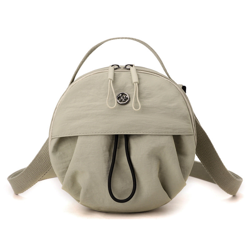 Greyish green Fashionable Round Crossbody Bag with Water-Resistant Nylon and Multi-Pocket Design for Daily Travel Lightweight Hands-Free Storage Solution for Local Professionals
